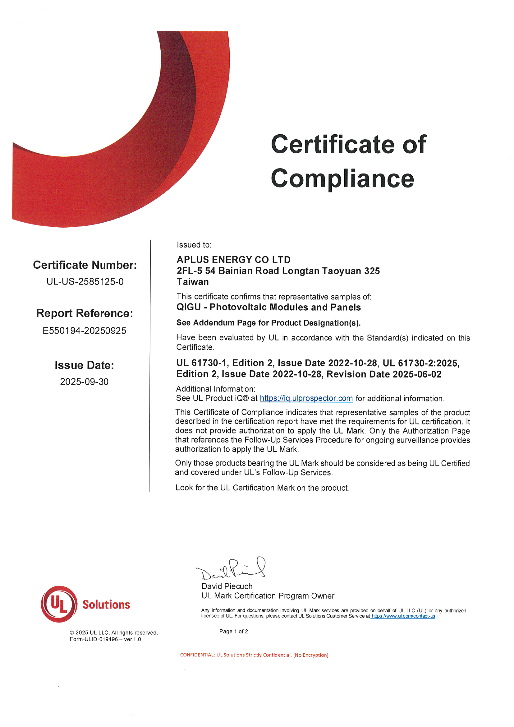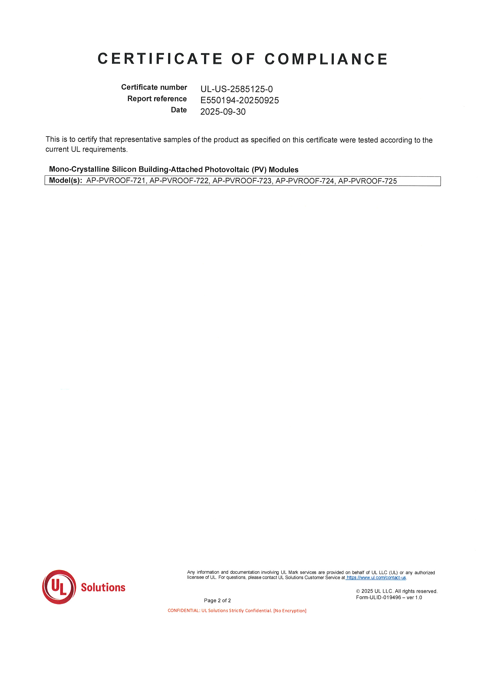 AP-PVROOF 取得UL1703 & IEC61215/61730 認證